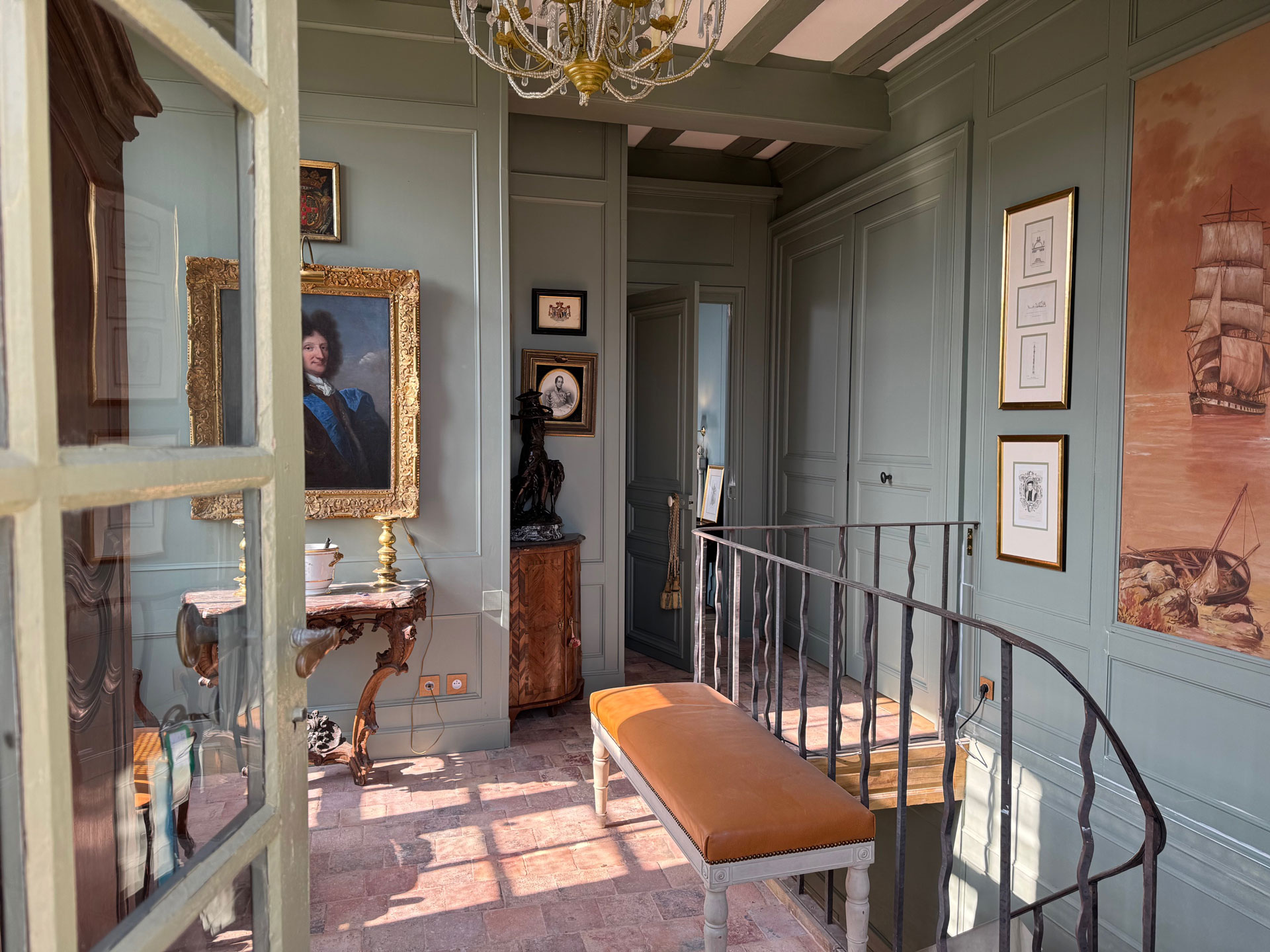 l’entrée, vous serez accueillis par un très beau portrait de François Henry de Montmorency, Duc de Luxembourg, grand Maréchal de Louis XIV, surnommé le tapissier de Notre Dame car lors de ses retours de bataille, il tapissait les murs de Notre Dame avec les drapeaux des régiments étrangers qu’il avait battus.